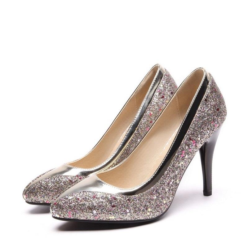 Glitter Bling Spike Heel Pointed Toe Pumps Sandals Shoes