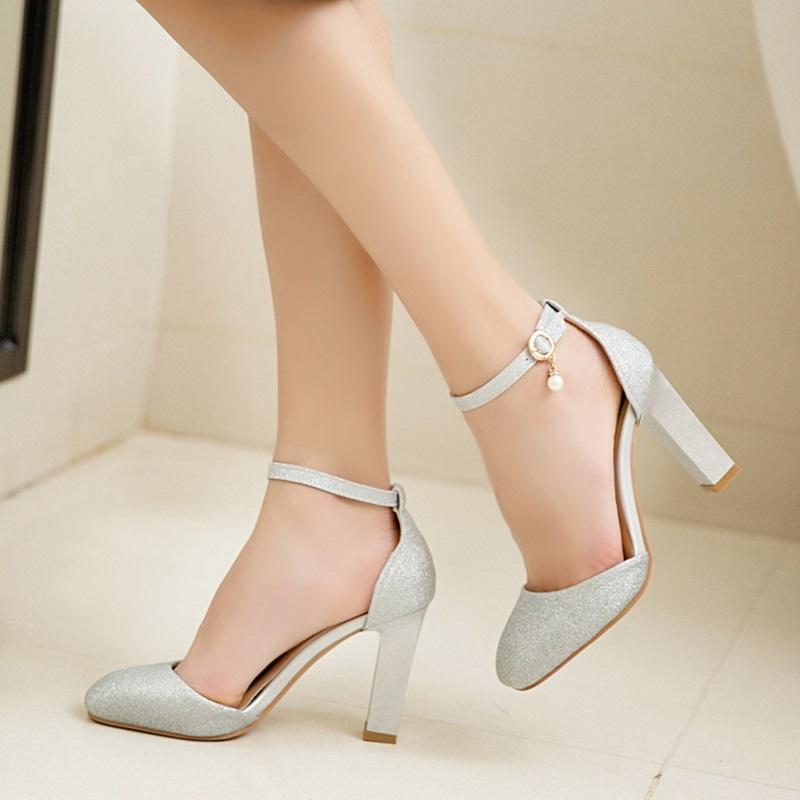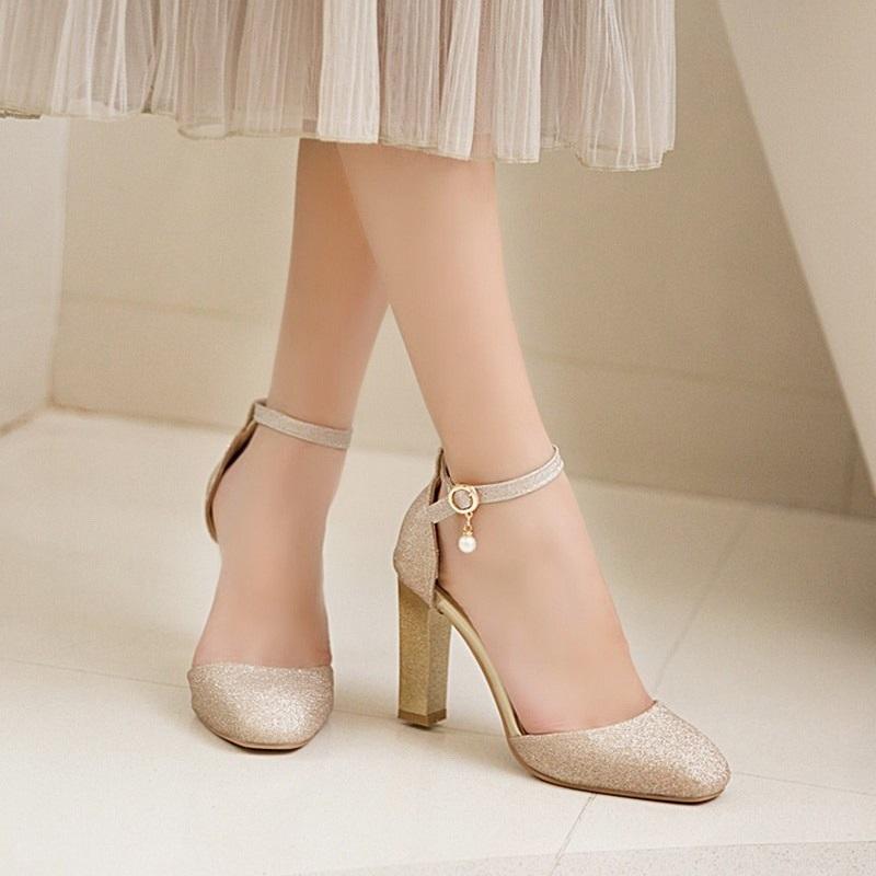 Sexy Glitter Ankle Strap Square High Heels Pumps Sandals
